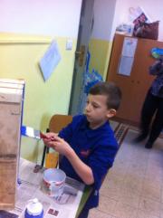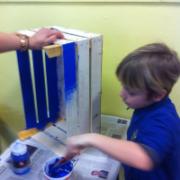 Attività di laboratorio: pittura libreria con cassette in legno...